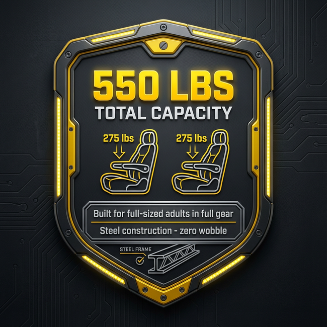 Tailbreaker is built with a heavy-duty powder coated steel frame to ensure premium stability and safety. Each of the two molded polymer seats is rated to safely support up to 275 pounds (550 pounds total system capacity). This system is over-engineered to provide a solid, secure foundation for any activity—whether you're working, fishing, or celebrating a tailgate victory.