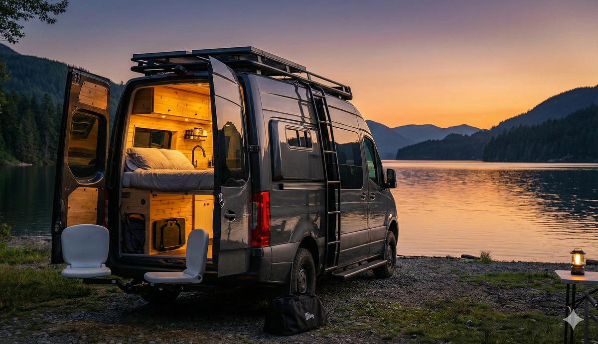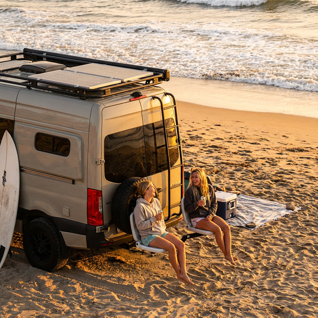 Social Basecamp - Create an instant hangout spot for friends around your van, with a solid seat or table always ready.