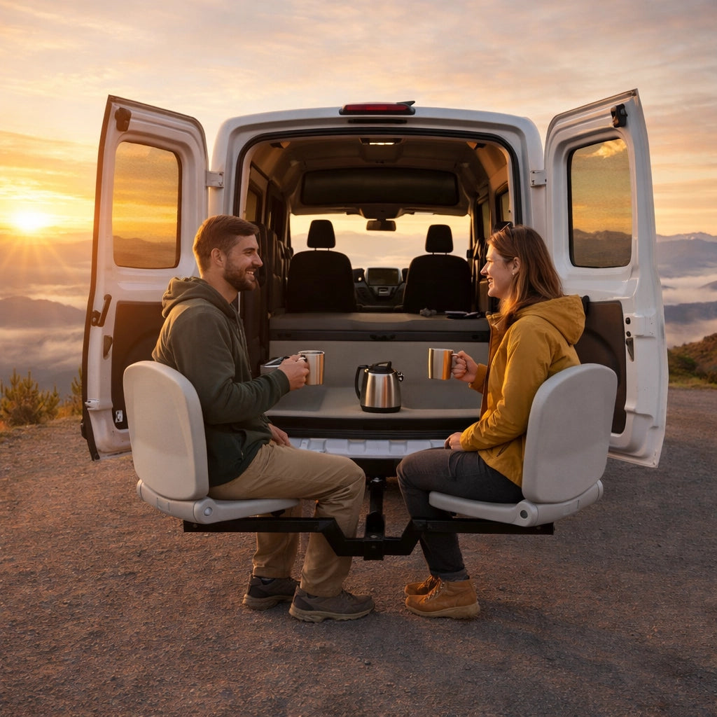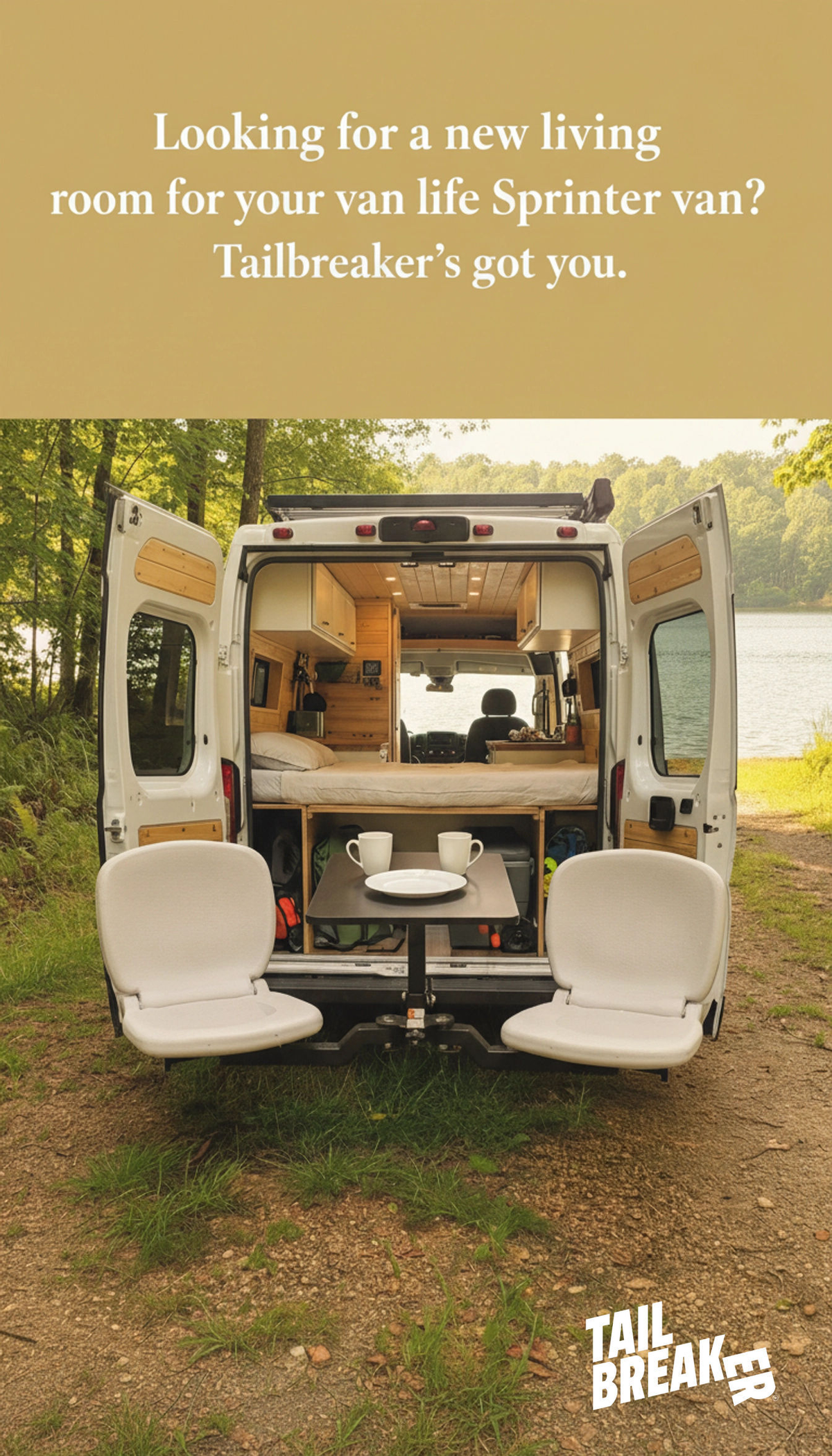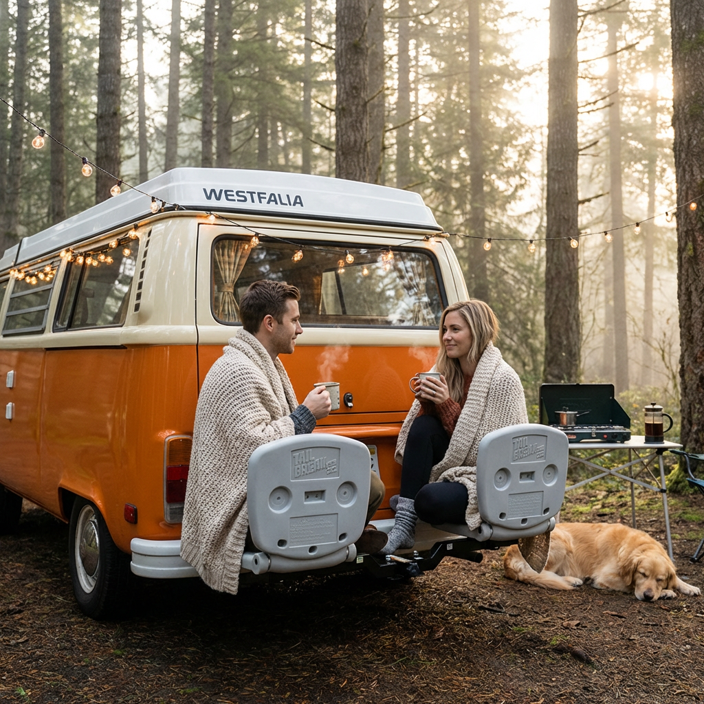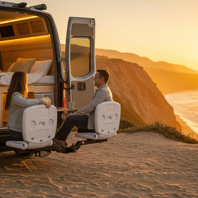 Transform your van adventure with the award-winning Tailbreaker: the first thing van lifers pull out and the last thing packed away at every stop. Forget flimsy camp chairs. Instantly create a stable, cozy outdoor living room at the back of your van—just attach Tailbreaker to your hitch and you’re ready to relax, eat, work, or soak in sunset views. Ready to camp, create, or chill in style? Tailbreaker is the van life upgrade you never knew you needed—until now. Your next stop deserves a perfect seat.